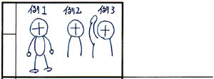 例えば右図を見て下さい。簡単な絵ですが、人間の位置関係、方向などが完璧に分かるんではないでしょうか。 |